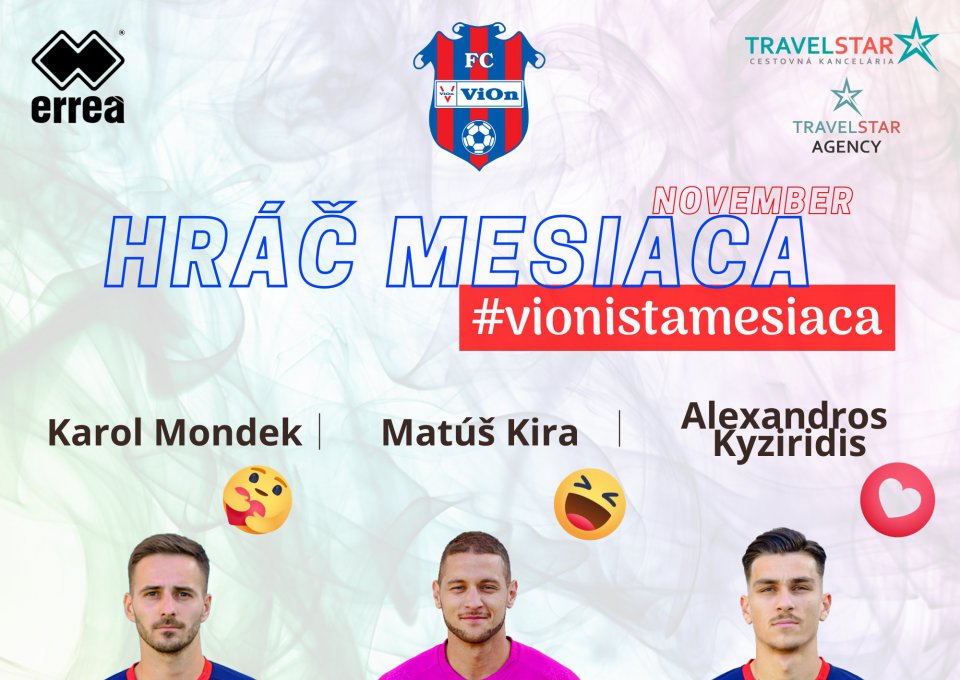 Jedenásty mesiac priniesol pre ViOn po neúspešnej sérii výsledkov pokropenie živou vodou a zisk dôležitých siedmich bodov. Trojica nominovaných vzišla na základe oficiálnych štatistík platformy INSTAT.